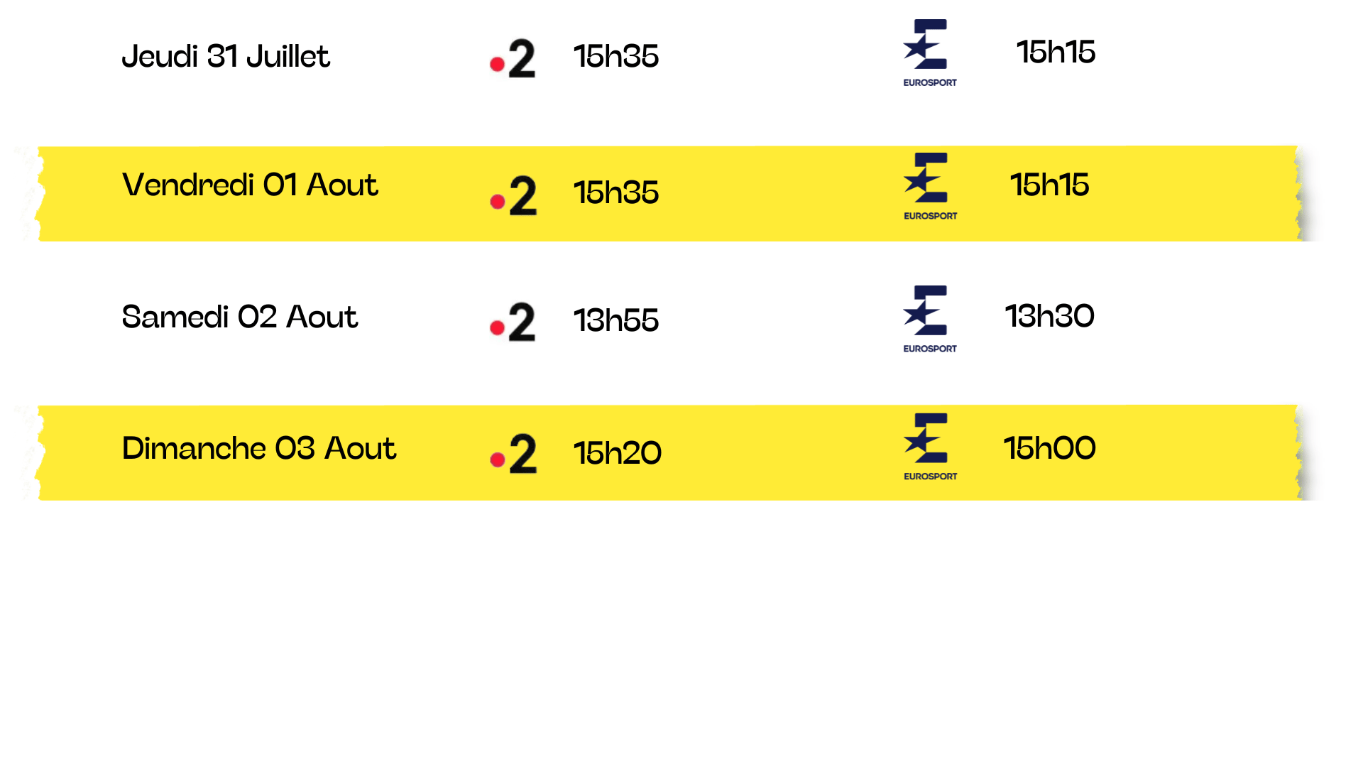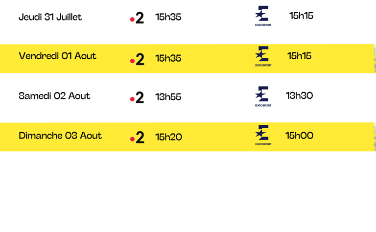 Cette année 3 étapes seront à suivre en intégralité, 2h30 de diffusion par jours est prévue.