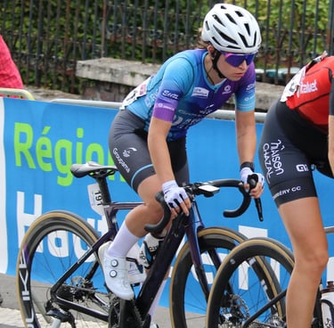 Ma première course pro c’était le Grand Prix du Morbihan avec la Team Elles. Je me souviens que le départ était donné très tôt le matin et qu’il faisait vraiment froid. L’ambiance était particulière différente des courses amateurs avec un peloton beaucoup plus dense et rapide. Les ascensions de Cadoudal m’ont marqué il y avait beaucoup de spectateurs et ça montait vraiment vite.