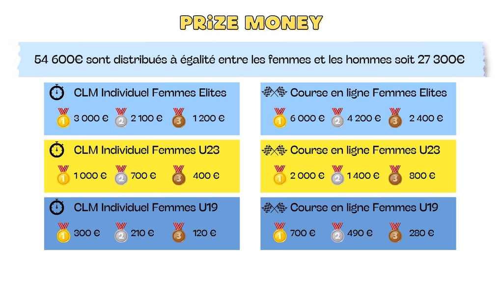 Sur les 5 jours de compétitions, 8 titres seront attribués dont :