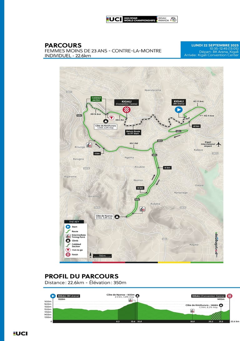 Pour la 1ére fois également, les coureures U23 auront leurs propres courses, que ce soit sur le Contre La Montre ou la Course en ligne, pour décrocher le titre mondial.