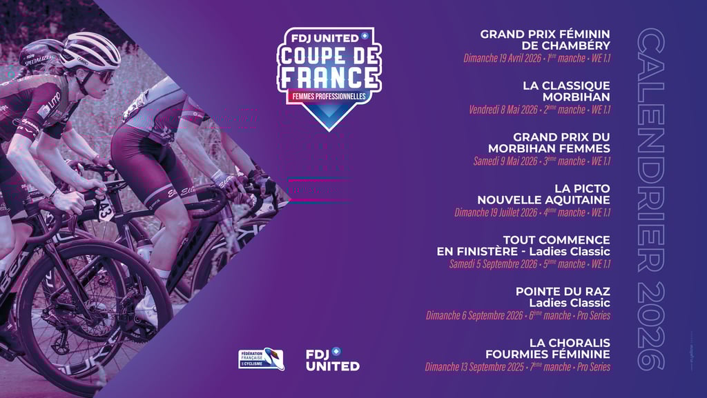 Du 19 avril, avec le Grand Prix Féminin de Chambéry au 13 septembre lors de La Choralis Fourmies Féminine, sept épreuves UCI, dont 5 de classe 1.1 et 2 en PRO SERIES, qui assurera aux épreuves concernées et à la coupe de France un plateau de qualité, sont au programme de La Coupe de France Elite Femmes FDJ UNITED 2026.