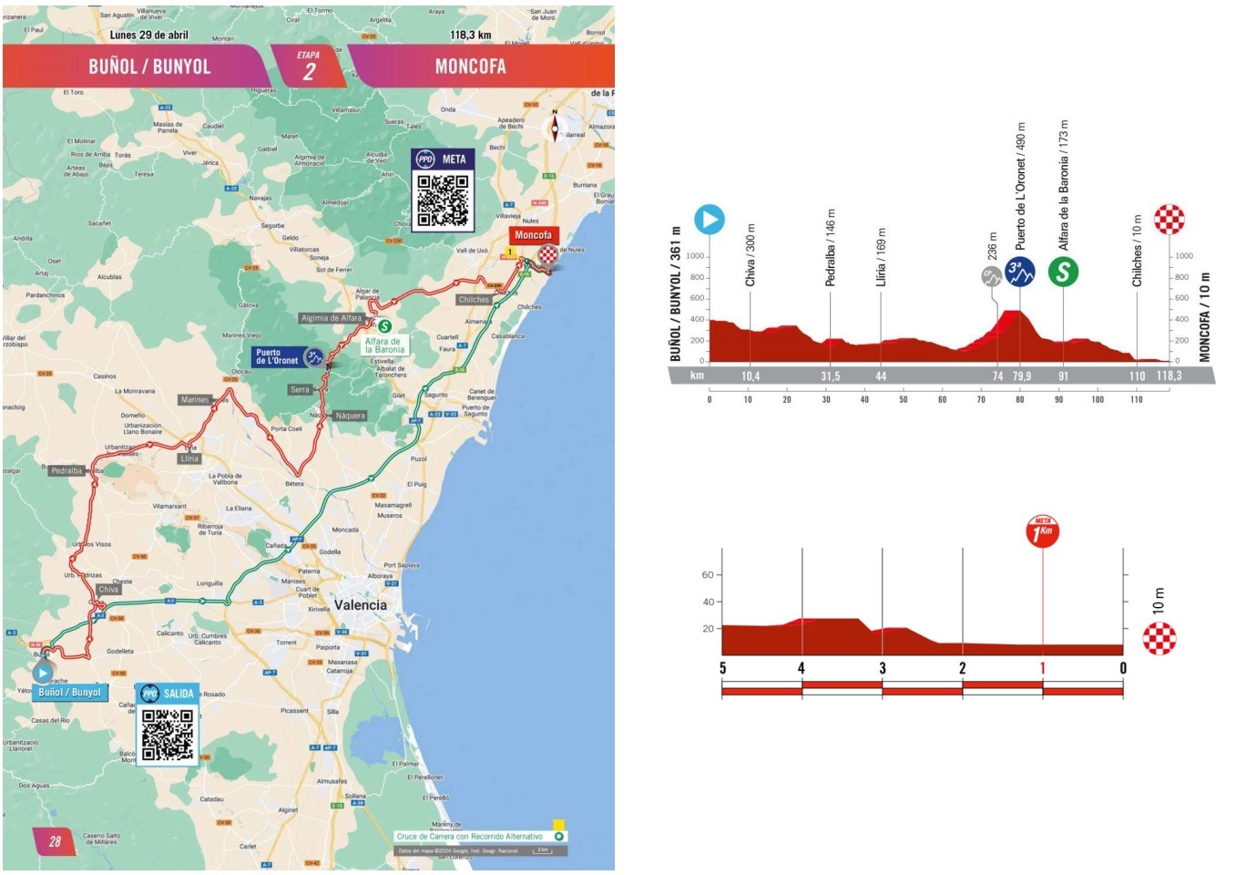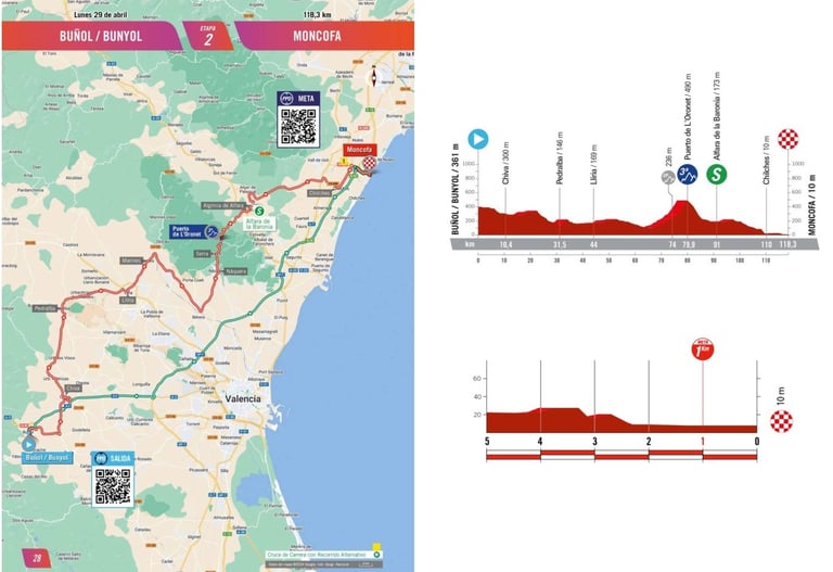 Cette première étape en ligne est la première opportunité pour les sprinteuses de s’illustrer sur cette Vuelta. La seule ascension du jour le Puerto de L'Oronet, connu par les coureures habitués de la Volta Valenciana ne devrait pas poser de difficultés aux coureures.