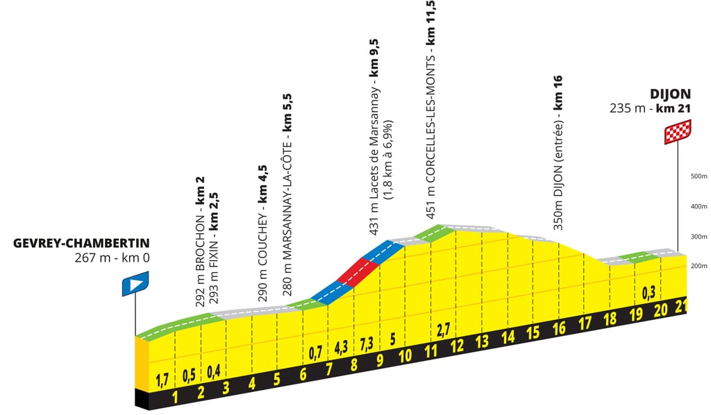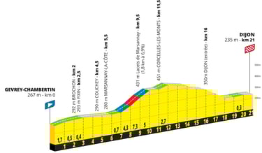 Le parcours sera vallonné avec un départ en faux plat montant, une ascension de 5 Km et la redescente vers Dijon. Les rouleuses et prétendantes au classement général marqueront déjà les esprits de leurs concurrentes.