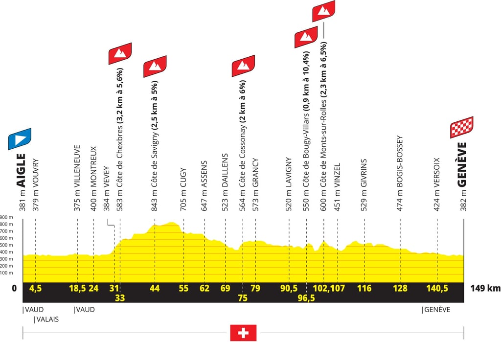 Après un départ devant le siège de l’UCI, les coureures ne quitteront pas du regard le Lac Leman qu’elles longeront une majeure partie de l’étape. Les sprinteuses devraient être à la fête dans les rues de Genève.