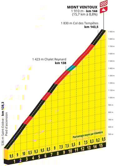 Au terme de la course ce seront 1175 Km répartis en 9 étapes, avec le retour d’un CLM Individuel, pour un dénivelé positif de 18795 m et une nouvelle arrivée sur un sommet mythique Le Mont Ventoux :