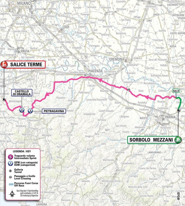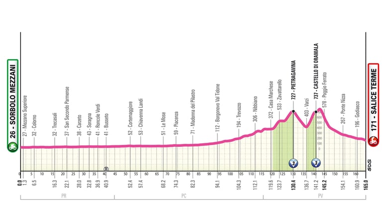 Sorbolo Mezzani > Salice Terme 165 Km