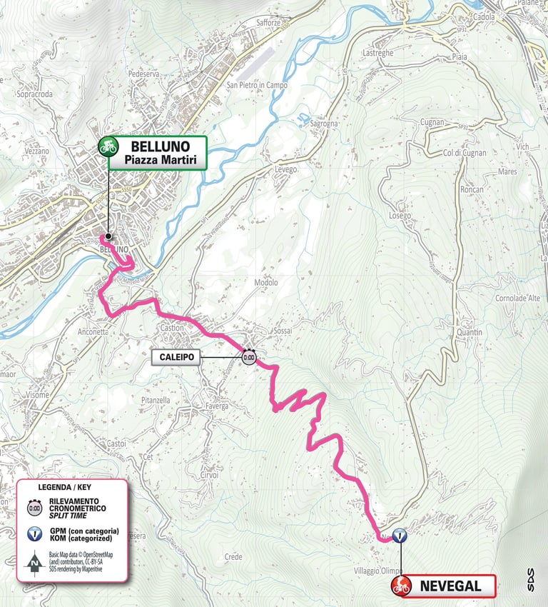 Le 1er rendez-vous pour les prétendantes pour le classement général avec le seul CLM individuel de ce Giro Women. 12,7 Km de course en côte dont 10,7 Km de montée vers Nevegal.