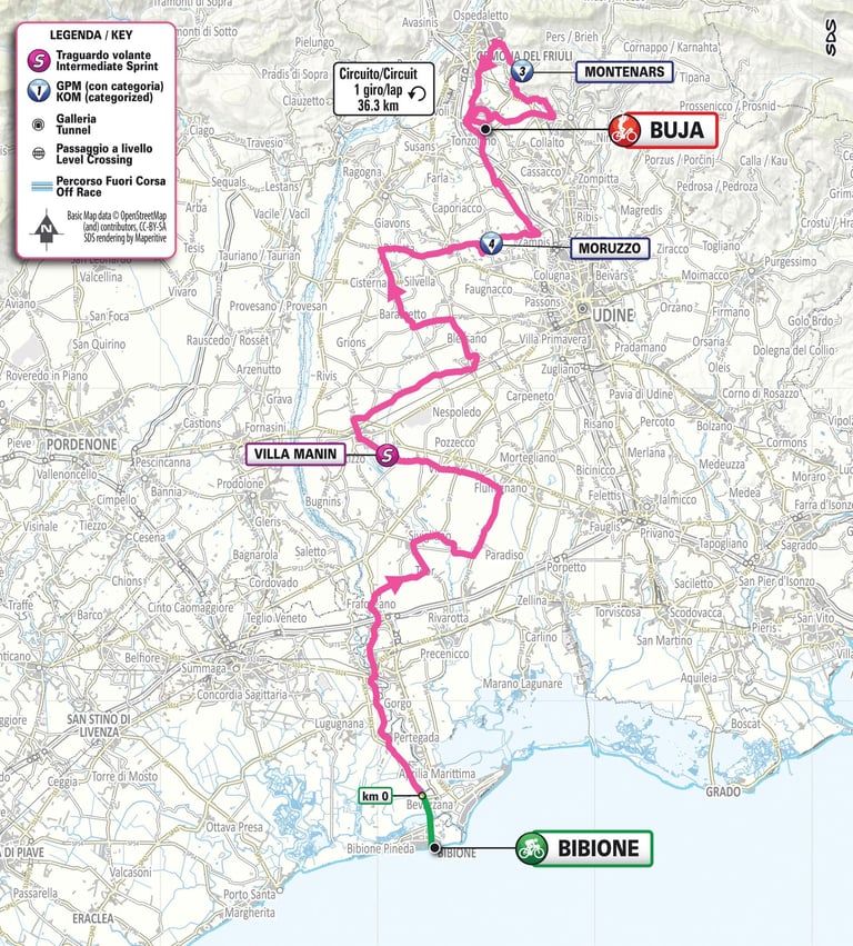 Bibione > Buja 154 Km