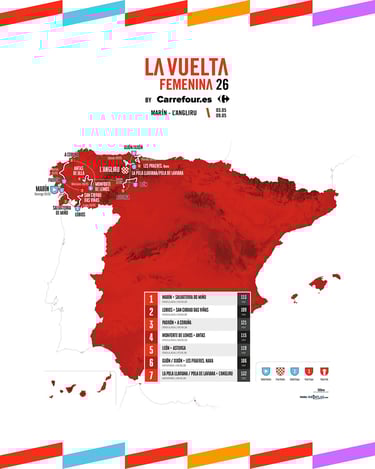 Premier Grand Tour de la saison, mais le dernier présenté à moins de deux mois du départ, c’est à Ribeira en Galice sur la côte Ouest Espagnole qu’a été présenté ce lundi 9 mars 2026, le parcours de la 3ème édition de La Vuelta Femenina By Carrefour.Es .